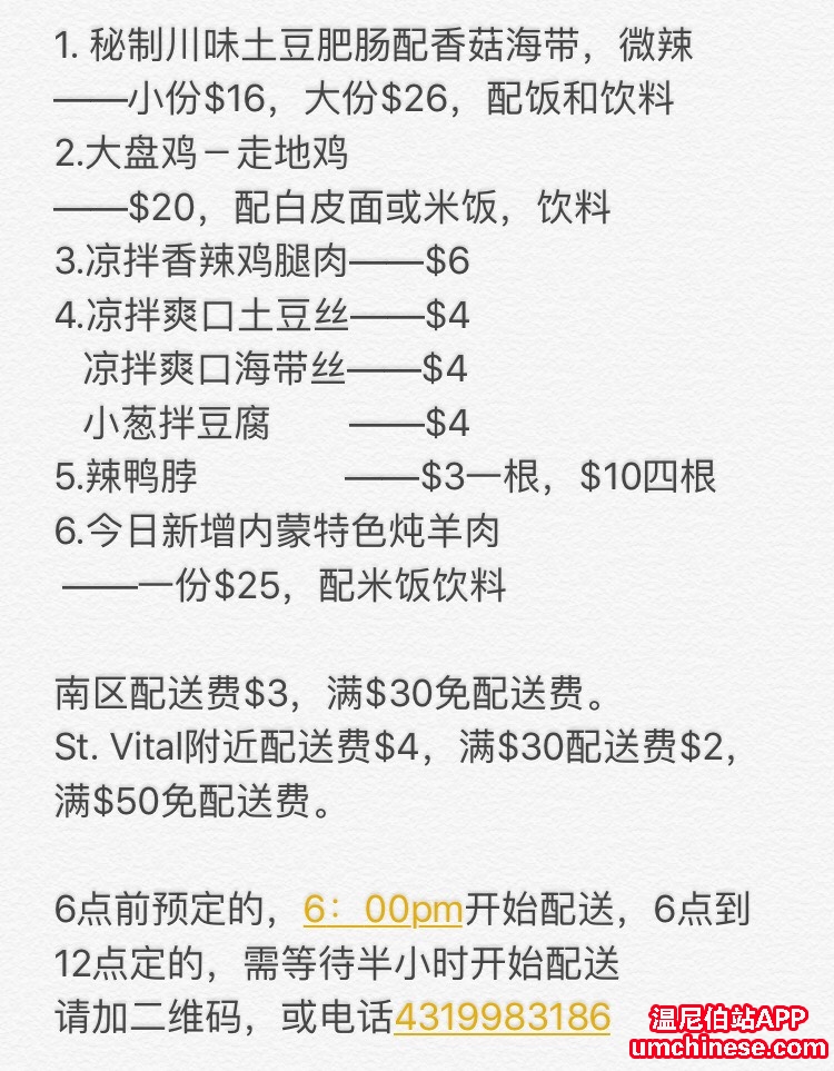 涛哥私厨,开始预定晚餐咯! 今日新增辣鸭脖——$3一根,$10四根 内蒙特色炖羊肉——一份$25,配米饭饮料