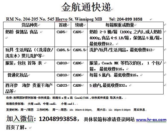 wanshaoyan 发表于 2016-11-7 14:05 请问寄到多伦多怎么收费啊?