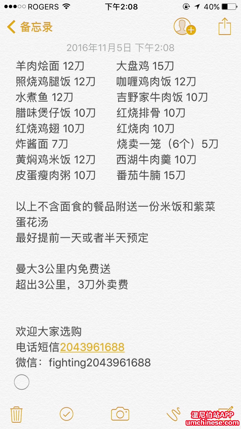 食材都是用最新鲜的,从Costco,superstore,还有各大华人超市选购,现点现采购,所以希望各位宝宝们能够提前一天或者半天预定,保证定时定点送到,让各位宝宝们不会饿着肚子等送餐 加我微信,每天更新一道招牌菜 ...