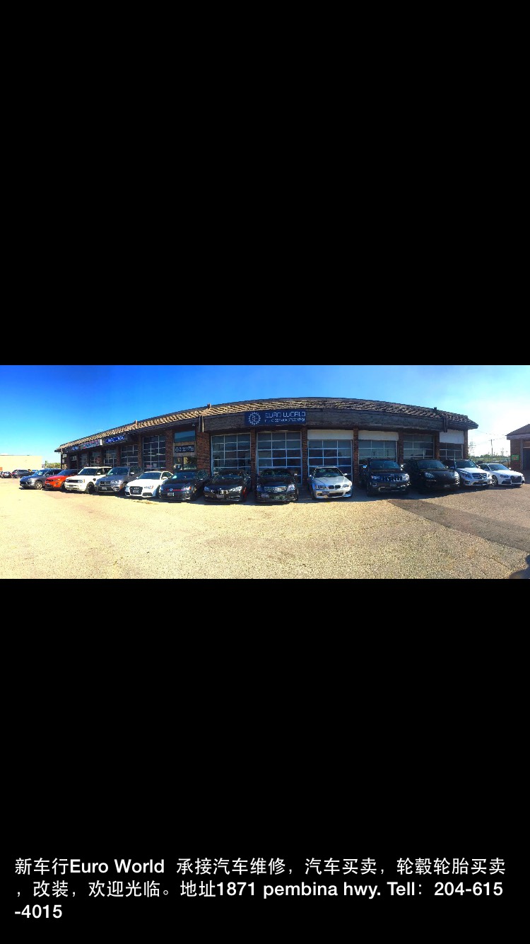本帖最后由 EuroWorld 于 2015-8-31 19:05 编辑 新车行EURO WORLD即将开业。地址1871 Pembina Hwy. TELL:204-615-4015 。承接汽车维修,汽车买卖,汽车改装,另有MR. RIM轮胎轮毂专卖分店进驻,。求转发