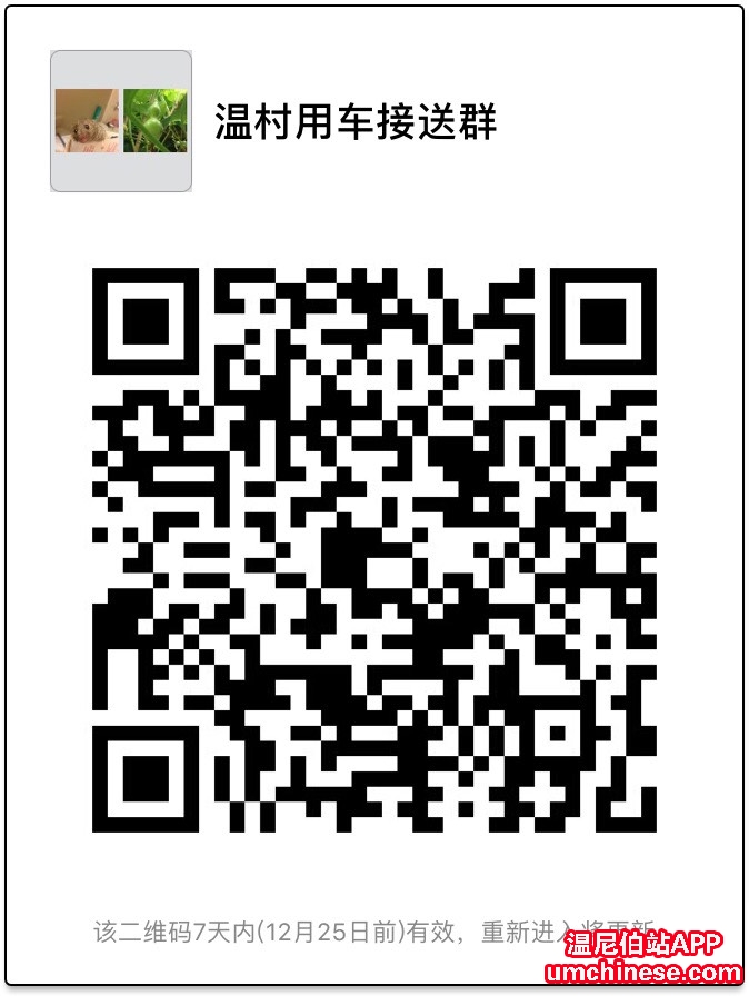 发现大家用车资源非常少,并且还要挨个联系非常麻烦,特建个用车群,欢迎所有需要用车的朋友加入,这样需要用车实时问,哪个司机有空哪个回复,不用在提前好几天预定了。楼主也刚开始做接送:南区5刀起,downtown15 ...