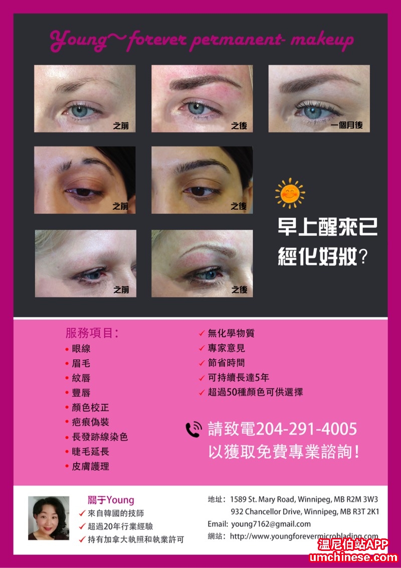 还在担心男朋友看到素颜的自己被吓到吗?还在烦恼每天要花费大量时间修剪自己的眉毛吗?还在害怕巨额的费用却换不来一个完美的妆容吗?Young Forever解决你的所有烦恼!将近20年的韩式半永久妆容工作经验,正统韩国 ...