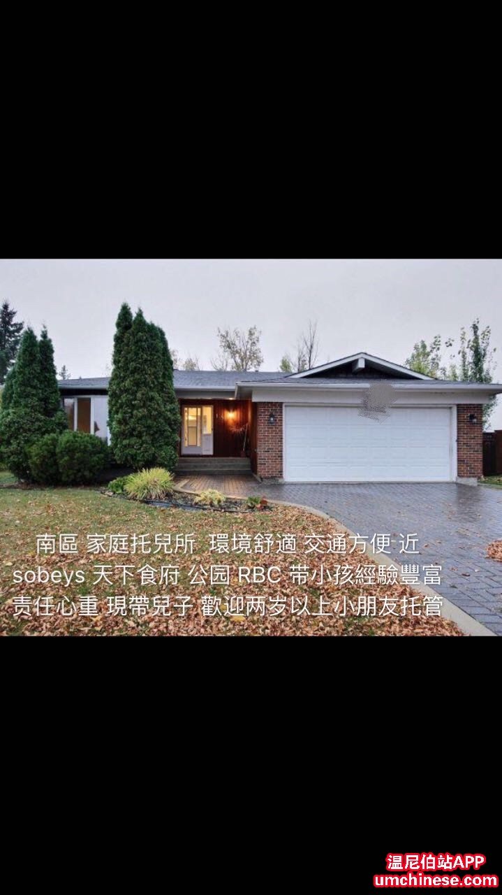 南區 家庭托兒所 環境舒適 交通方便 近sobeys 天下食府 公园 RBC 带小孩經驗豐富 责任心重 現帶兒子 歡迎两岁以上小朋友托管 欢迎电话或短信联系: 204-899-6889
