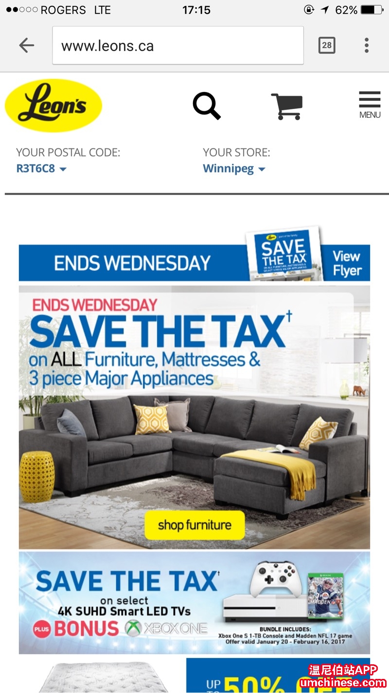 优惠期间所有家具、床垫通通免税 活动至2月8日星期三 请联系Michael Liu(刘) 204-583-1912 详情加我微信:leonsliu06 官网:http://www.leons.ca/