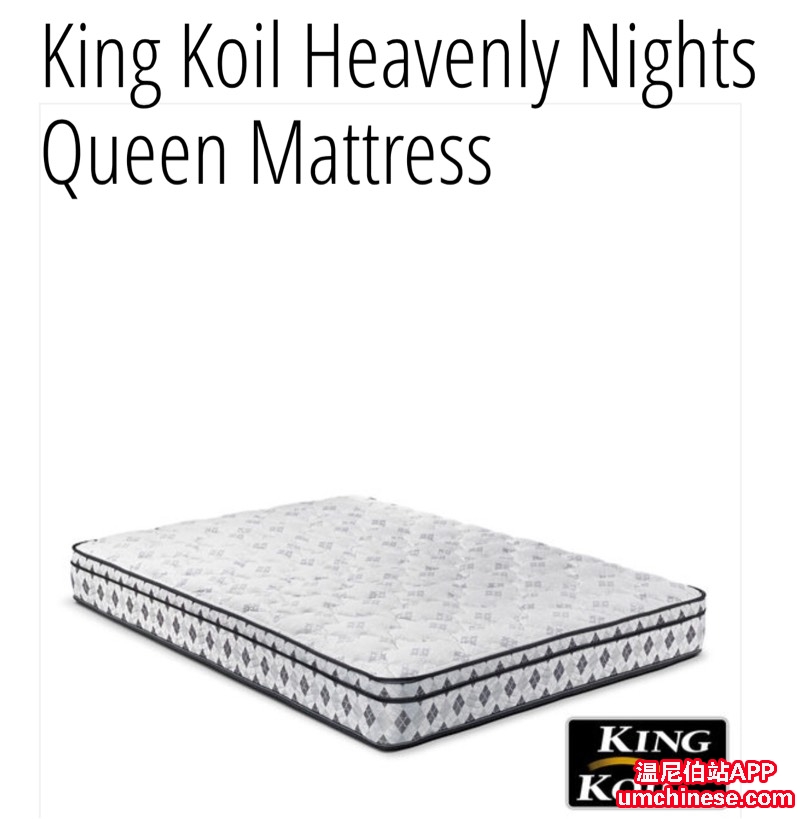 Leon's 免税活动中! 著名床垫品牌King Koil 只需$299 全新queen size 床垫 有兴趣的小伙伴快联系Michael Liu(刘) 204-583-1912 加微信:leonsliu06 官网:www.leons.ca