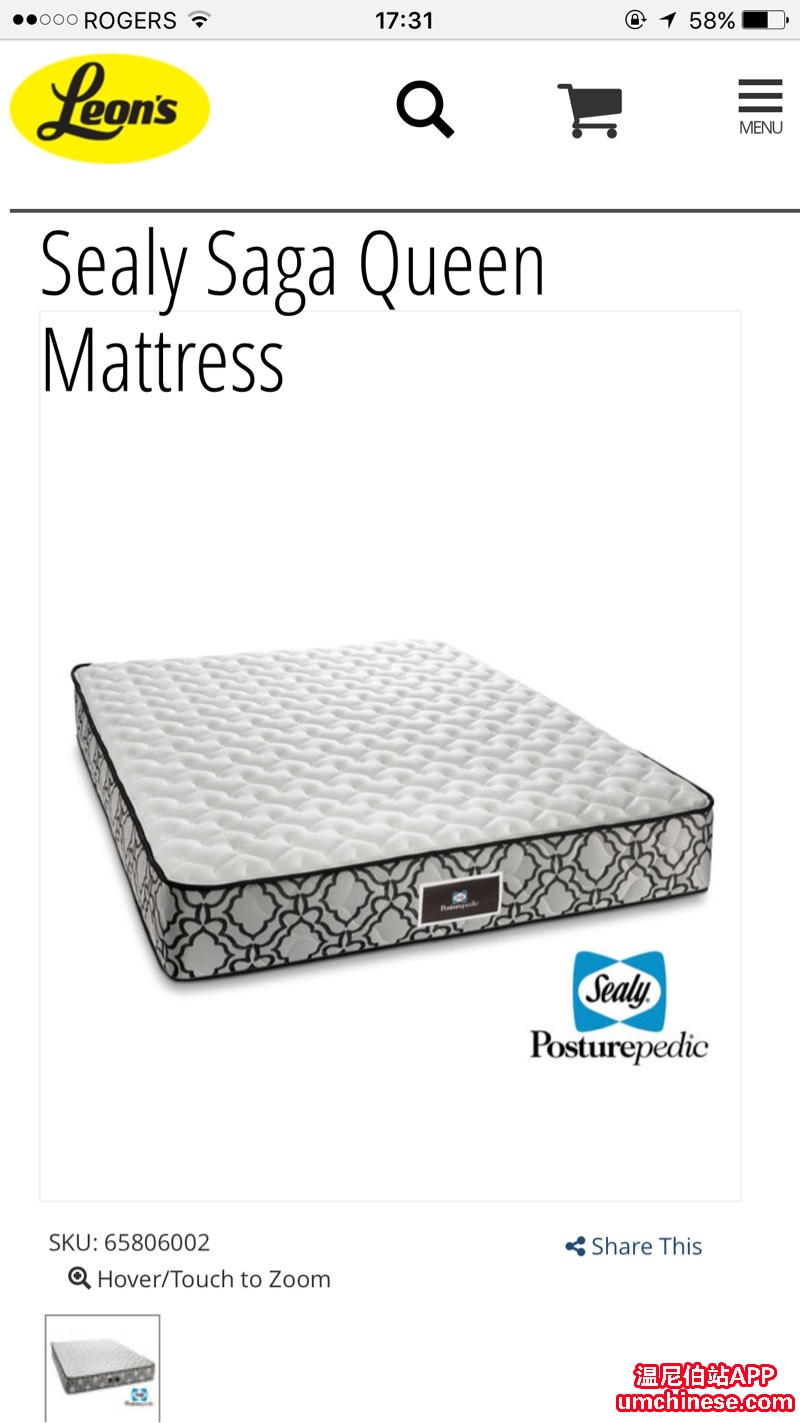 Leon's免税周! 所有家具、床垫一律免税! 原价$999 著名品牌床垫 Sealy Saga 系列 Queen size 只需$399! 有需要的小伙伴快点联系我 Michael Liu(刘) 电话:204-583-1912 微信:Leonsliu06 官网:www.leons.ca ...