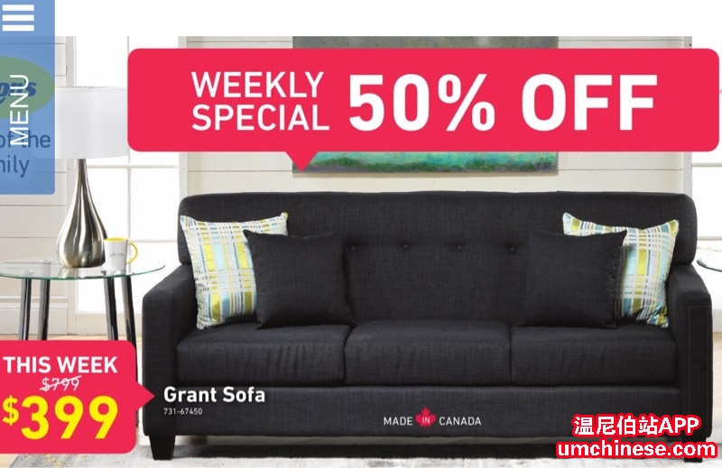 Leon's每周精选 Grant沙发 $399(原价$799)时尚设计,易打理 有需要的小伙伴快点联系我 Michael Liu(刘) 电话:204-583-1912 微信:Leonsliu06 官网:www.leons.ca