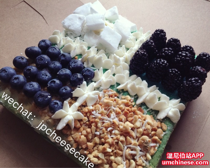 新品DIY 四宫格芝士蛋糕 A(蓝莓、红莓、草莓、黑莓)选择两项 B(椰子碎、花生碎、棉花糖、巧克力 )选择两项 快来定制属于您自己的cheese cake吧~