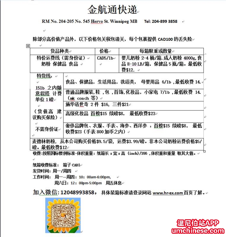 最新开通加拿大境内,美国及其他国家的文件、货物新业务。发 DHL, UPS价格超便宜,具体费用欢迎来电咨询! 海参 西洋参 冰酒直邮中国 包关税清关! 毕业回国,个人物品回流,免税直邮!