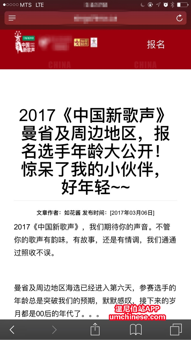 这两天看到温尼伯**要搞那个中国新歌声,自吹自擂全加拿大范围,每省前三去温哥华比,温哥华前三去浙江卫视比。 我本来心动的,好奇搜了了下去年加拿大赛区进到浙江卫视的 呵呵 没搜到。 后来细想了一下…这比 ...