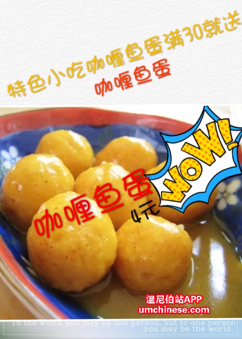 独一无二 私厨 本周五 六 日 点餐满30 送 特色小吃 咖喱鱼蛋一份