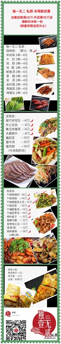 点餐自取满20刀 外送满30刀 送炒米粉一份 数量有限 送完为止