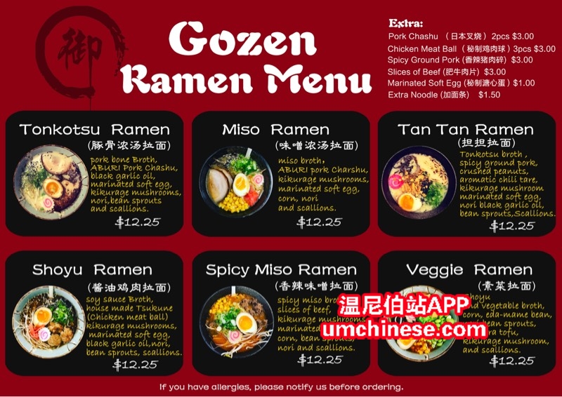 来来来 不同口味 那一碗是您最喜欢的? 今天营业时间:11:00-9:00pm 订座电话:204-254-8247 地址:1225 St.Mary's Rd 在St.Vital Mall 里面,London Drug入口 【出示本店优惠群=九折优惠】