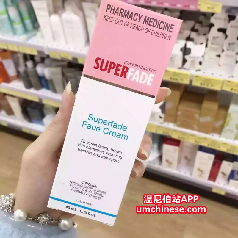 澳洲代购super fade 祛斑霜40ml。澳洲特产,口碑超好,这款专为斑点女士研发,在澳洲几乎人手一支,黑斑,晒斑,老年斑,黄褐斑,麻雀斑孕后斑点都可以祛除。可温和地移除受损皮肤组织促进细嫩皮肤再生,成功地达到 ...