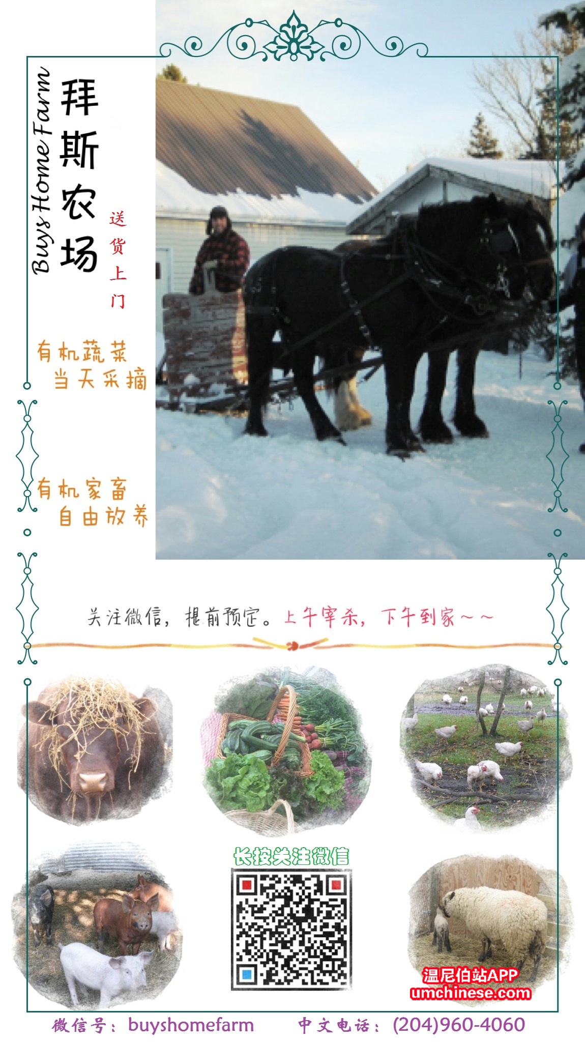 有机:非转基因蔬菜,绝对不使用任何化肥、生长激素、杀虫剂、除草剂、抗生素等 + 天然:动物喂以天然谷物,蔬菜仅施动物粪肥 + 放养:牛羊鸡等动物超大面积自由放养,保证肉质鲜美嫩滑 + 安全:所有肉类在出 ...