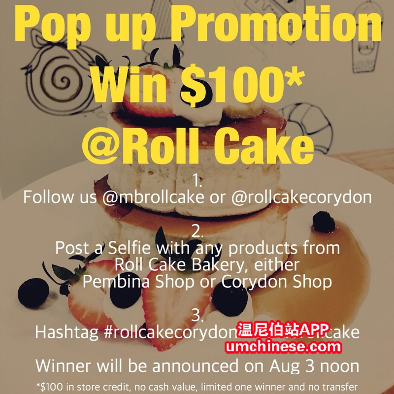Pop up Promotion Win $100* @Roll Cake 1. Follow us on Instagram @mbrollcake or @rollcakecorydon 2. Post a Selfie with any products from Roll Cake Bakery, either Pembina Shop or Corydon Shop 3. ...