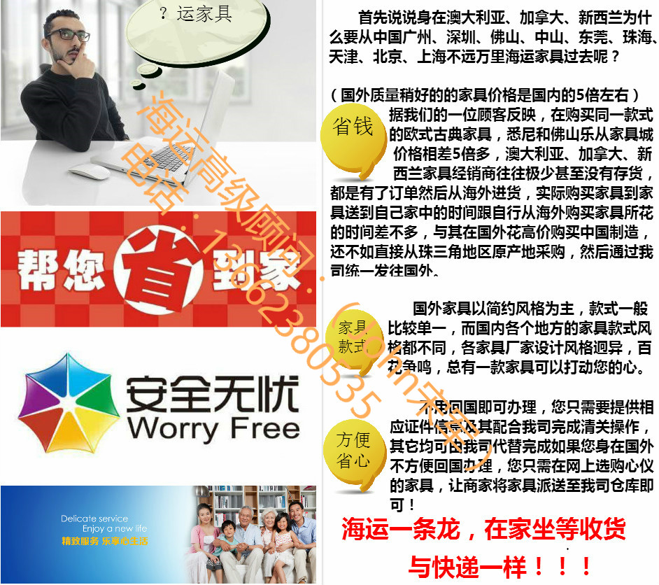 为什么要从中国买家具海运到加拿大呢? 真的很方便划算 10年专业中国到加拿大温哥华,多伦多,蒙特利尔,埃德蒙顿,卡尔加里海运双清关门到门派送服务。 欢迎来电咨询,电话/微信:13662380535 广州/佛山/深圳/ ...