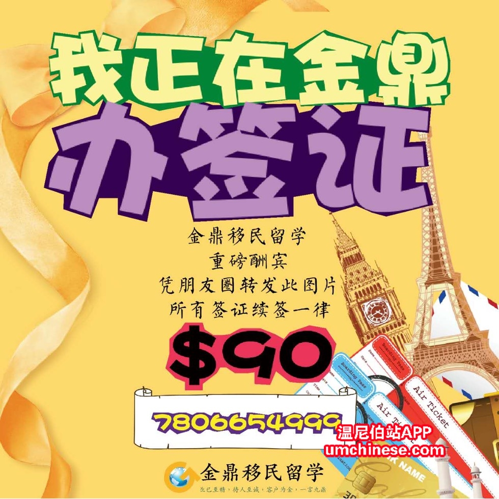 凭朋友圈转发图片 任何续签一律$90 移民申请 $2988 赶快把最好的消息告诉最关心的朋友吧
