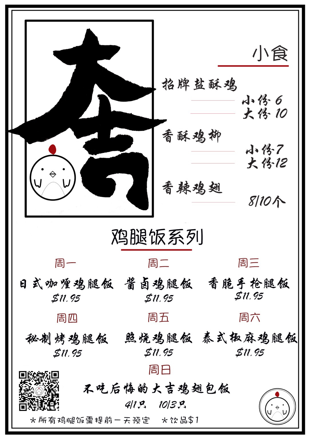 脆弱小姐 发表于 2017-10-13 14:23 能预定明天的照烧鸡腿饭吗...还是有店,地址