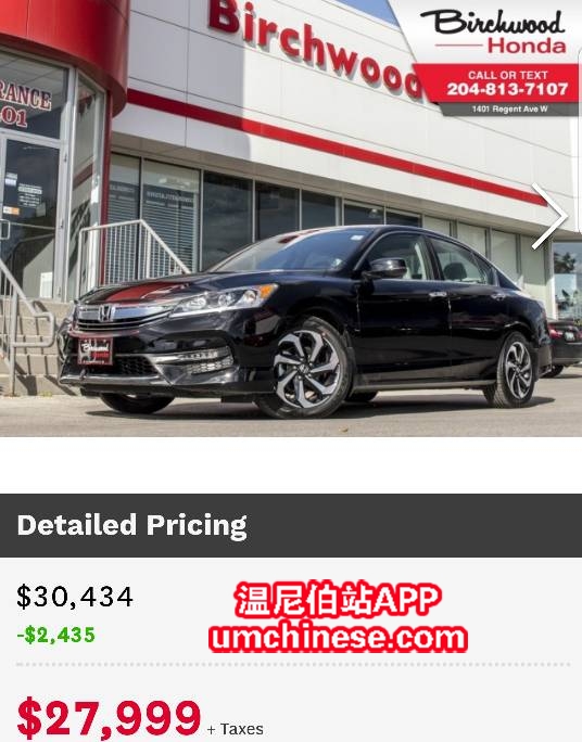 Birchwood Honda on Regent Avenue 为您推荐几款折扣新车 2017 黑色两门版雅阁 顶配 导航, 倒车影像, 皮座, 前排分区温控, 自动LED大灯, 驾驶辅助系统等 配置十分齐全。 原价:$36634 现价:$30734 2017 &n ...