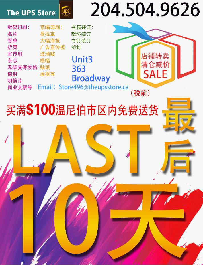 [生活服务] 市中心UPS店铺转卖,最后十天促销大减价!!!