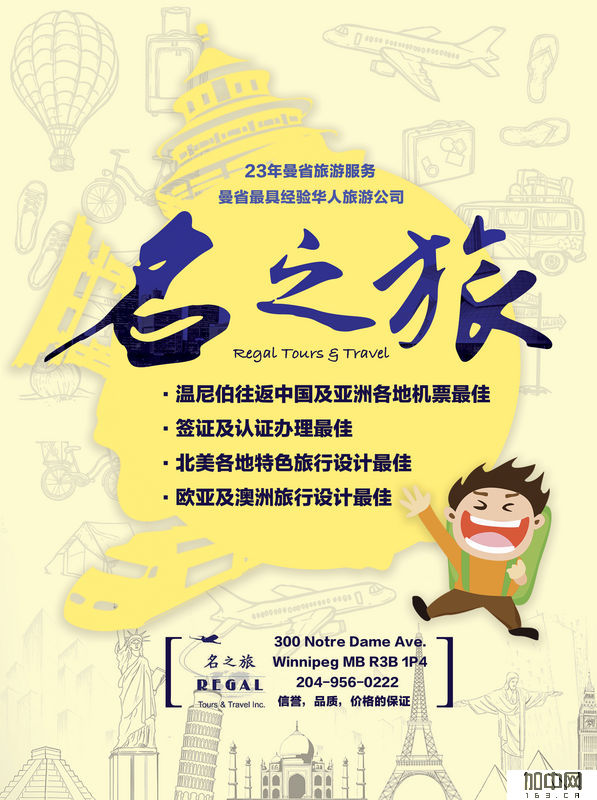 我們是有歷史悠久名之旅旅行社 口碑好 服務佳 過去24年 在溫尼伯為海外華人 提供各種不同的旅遊產品 - 加拿大團,郵輪,回國特價機票 幫助你們解決各樣的旅遊疑問,價錢查詢和簽證問題! 農曆新年 ...
