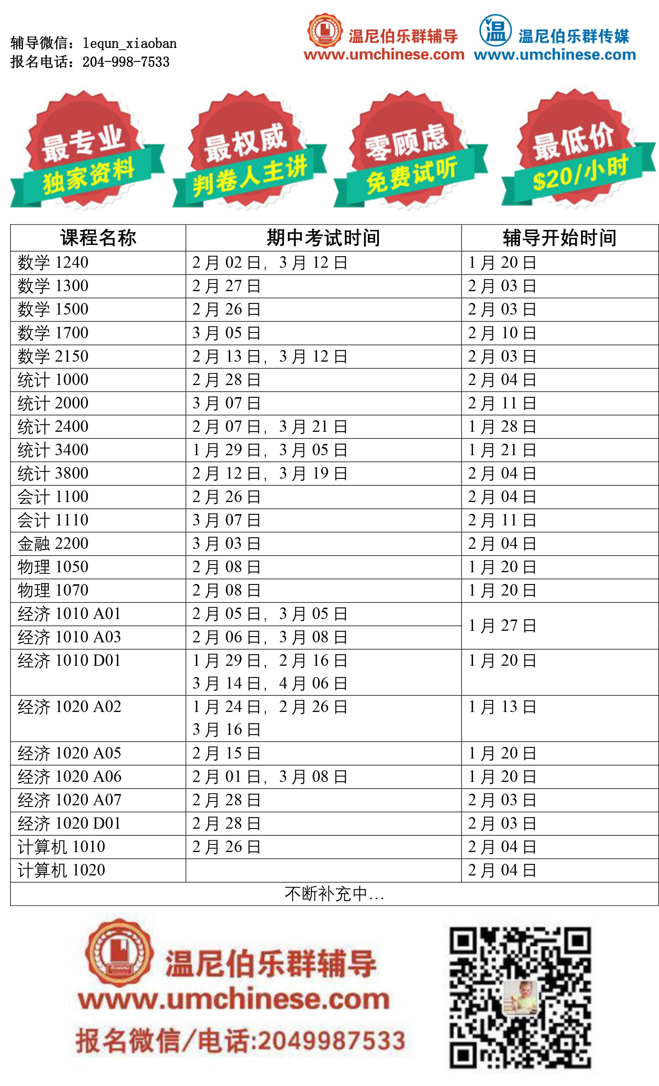 曼大独家材料+报课后“曼大在职Marker”判卷老师—>免费 作业和小考指导 同学们点开下图 赶紧查查自己的期中考试时间 直到有一天,乐群辅导从天而降! 学霸讲师帮你策略复习,划出考点, ...