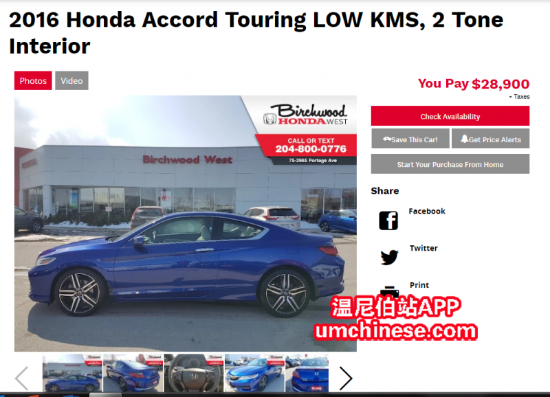 - 这台车通过了高标准的Birchwood Safety 级别的检测,被我们完全维护过了,所以质量和车况保证,不会出现让客人买回家为车况而担忧。 -本田以其世界级的可靠性而闻名。我们位于PoinT WEST Autopark Portage ave, ...