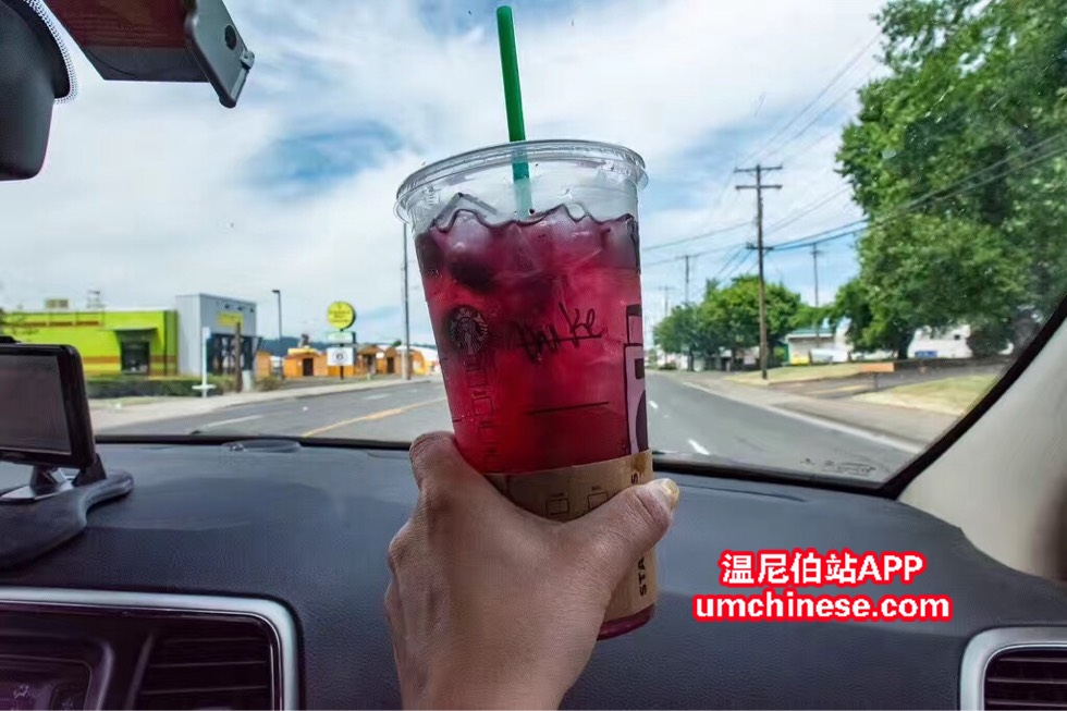 今天从下午2点至close,Refresher 或 Ice Tea (Grande or larger)享受半价优惠.(图 BY M01229)
