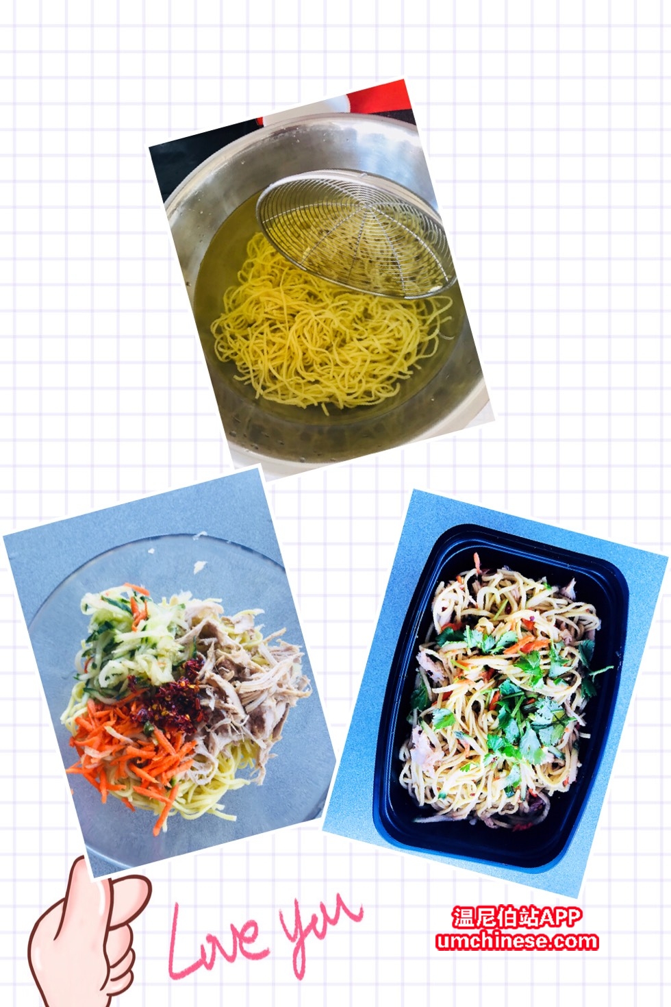昨天小伙伴想要的鸡丝凉面,酸酸甜甜,配上么么茶,凉爽无比哦,晚餐开始啦[调皮]
