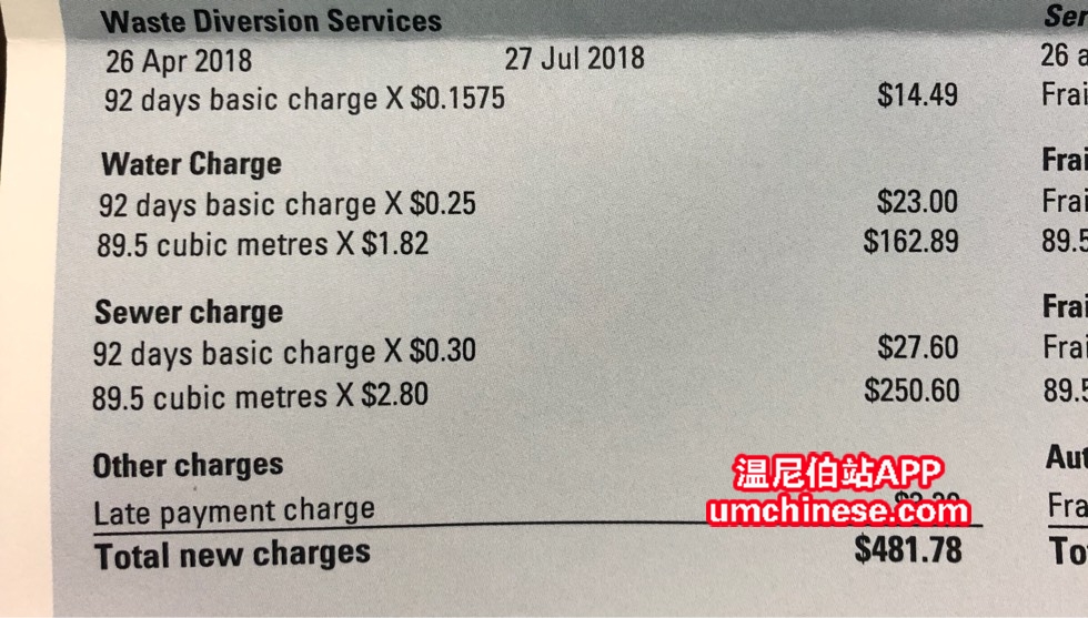 | 可以看一下自己家水表和他们发来的这个水费账单上的水表读数是不是一样的,特别是最近市政要求住户报水表读数,所以都会估读一个比较高的数字(让你们都打电话问怎么回事,然后就被要求报读数了LOL)。现在大家收到的水费单子,其实上面的数字并不是实际你使用的水量,全都是市政估读的数字,除非自己打电话去告知市政水表读数,他们才会按实际读数再发一次账单,对之前估读的数字多退少补。 现在市政要求是每年至少要提供一次水表读数。 |