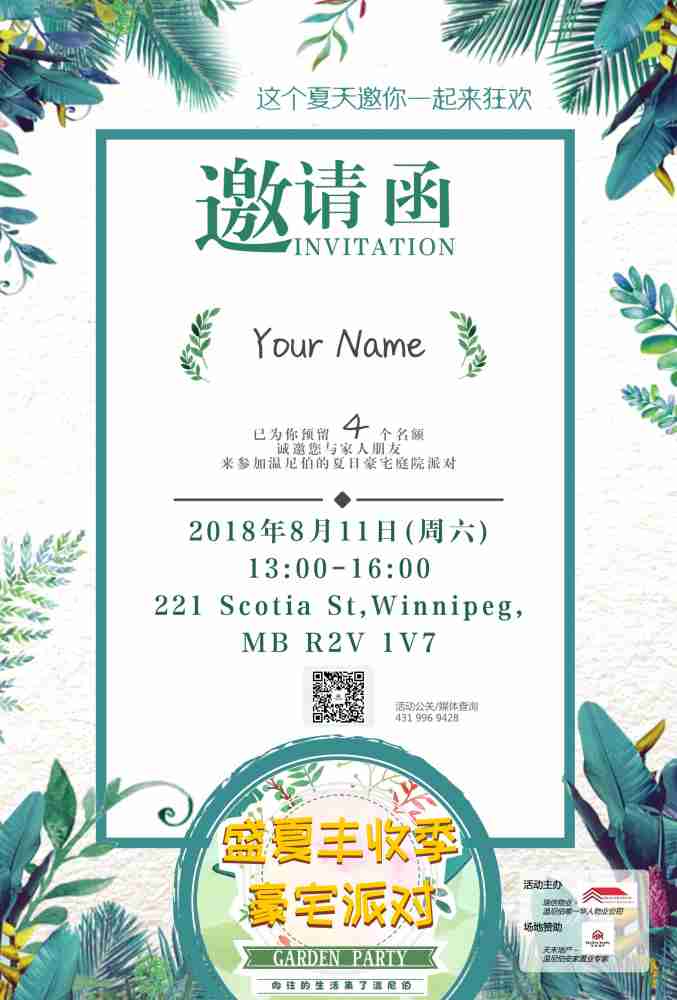 温尼伯华人Garden Party盛宴 令人期待的夏日豪宅趴等你来 享往的生活空降加拿大-------转发此文可获邀请,邀请函等你来抢 *更新:有更多别墅照片爆光*
