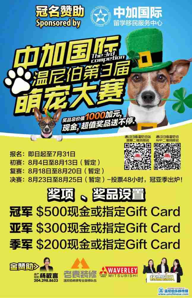 由 温尼伯乐群传媒 举办、【中加国际】冠名赞助的温尼伯第三届“萌宠大赛”复赛开始啦! 文字 | 微微一笑编辑 | 微微一笑图片 | 部分来 ...