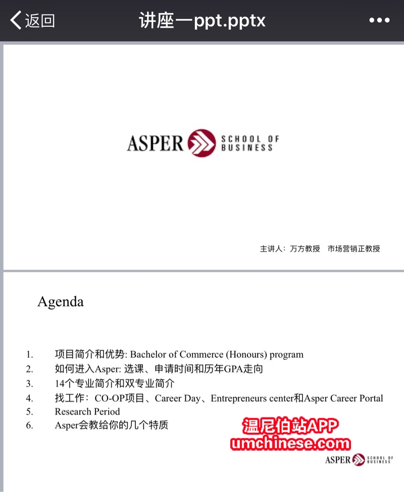 曼大Asper商学院中国学生交流会,是一个由商学院著名市场营销教授万方教授牵头,致力于打造中国商科留学生互帮互助群体的非营利性民间组织。成员广泛包括本科、研究生、博士,学科全面涵盖金融、会计、精算、市场营销等14个专业。欢迎各位未来想进入商院的、正在商院的、已经毕业的同学加入交流。 |