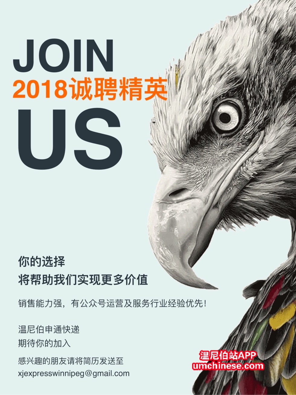 温尼伯申通快递招聘啦!如果你对工作充满热情,对我们的的服务理念有着同样的认知和理念,欢迎加入我们的团队!有销售能力,公众号运营及相关服务行业经验优先,感兴趣的朋友请发送简历至邮箱xjexpresswinnipeg@gmai ...
