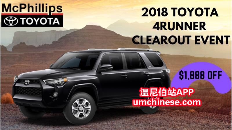 LEASE 新车今日特惠! (**2018 丰田超霸4RUNNER基础款**) (**5597725**) 这台车今日只要 (**$296.36每两周 **利息4.69%**5年Lease**) O.A.C. 加税. 现金(**$46085.68**)加税. 欢迎今天给我打电话:204-720-5711 ...