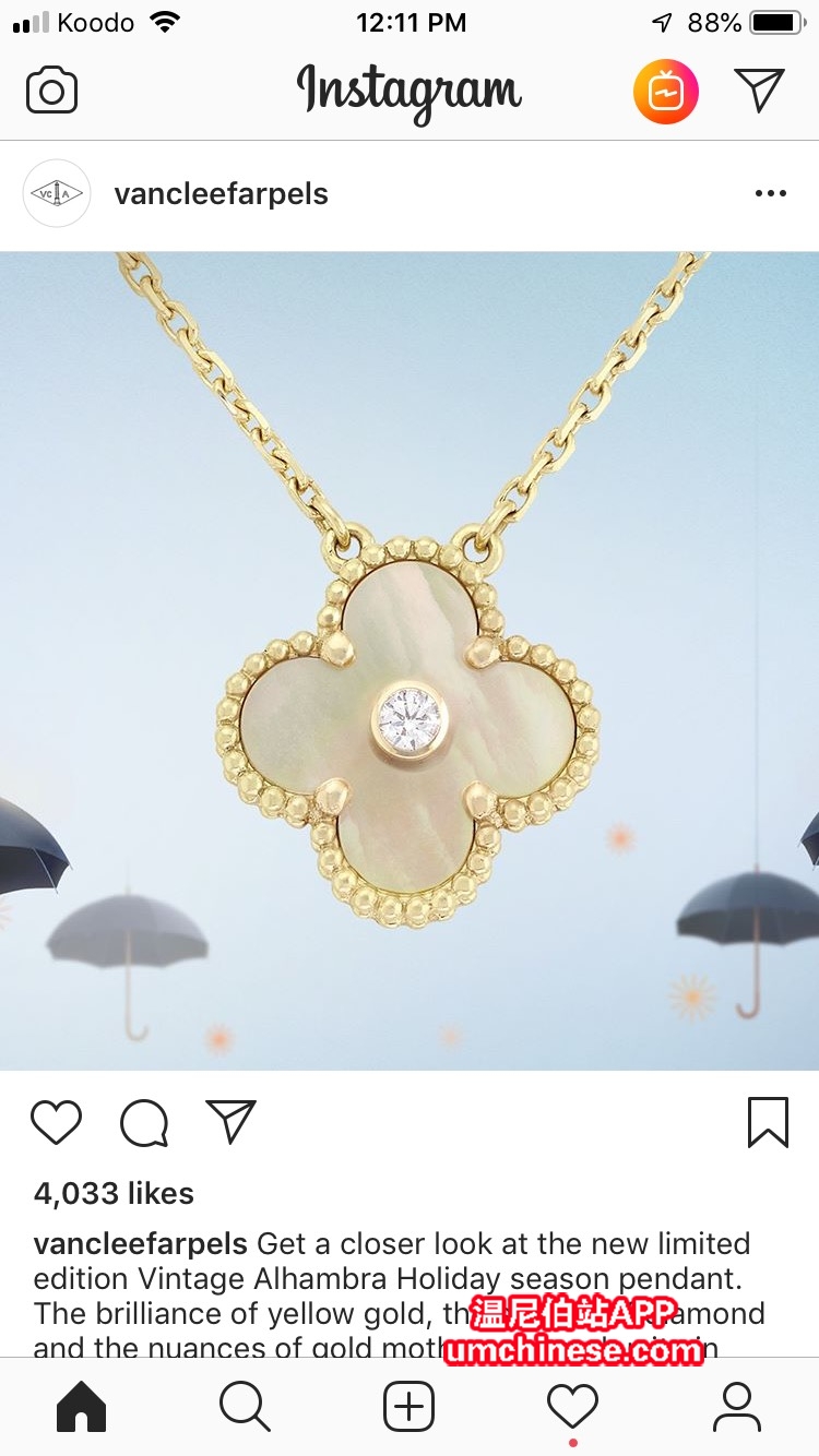 加拿大唯一梵克雅宝指定经销商-Birks高级珠宝连锁店。温尼伯location可订购 Birks Winnipeg 地址:191 Lombard ave 中文销售微信号:shi4shi 全球限量2500条,香港已断货。加拿大还有少量现货。