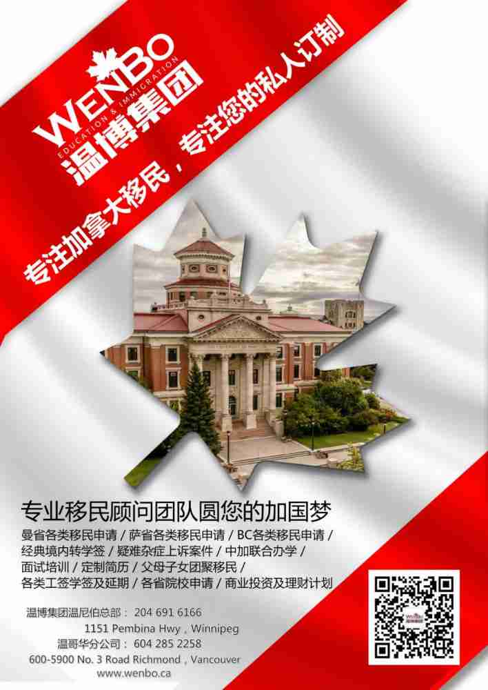 温博集团——加拿大专业移民顾问团队 专注加拿大移民,专注您的私人订制。 温博集团顾问组由具有多年专业移民经验的持牌顾问率领,侧重政策解析、条件评估、移民方案私人订制、经典旅转学等各种签证、移民项目的办 ...