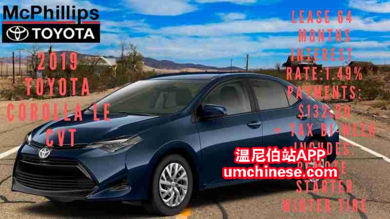 LEASE 新车今日特惠!(**2019丰田卡罗拉LE 中配**) (**C172990**) 这台车今日只要 (**$132.20每两周 **利息1.49%**64个月Lease**) O.A.C. 加税. 现金(**$23937.56**)加税. 折扣包含:远程电动打火&雪胎 欢迎今天 ...