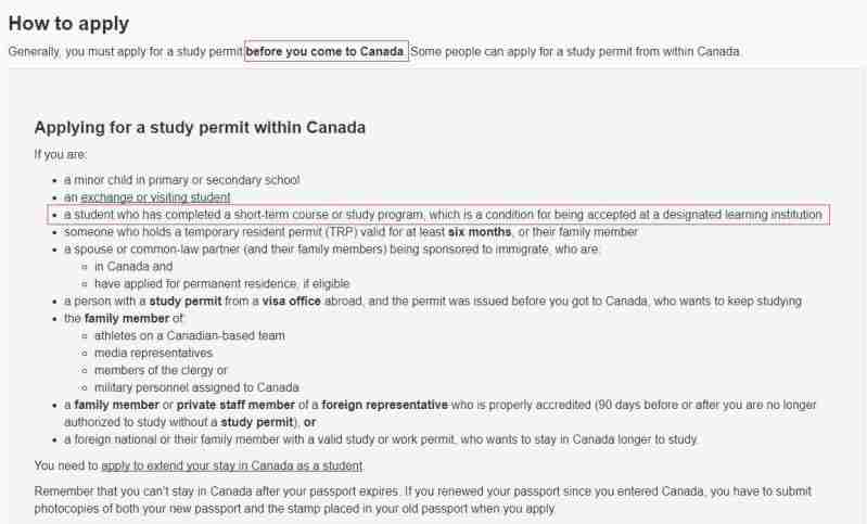 加拿大移民局规定申请加拿大留学原则上是必须要求在进入加拿大之前就需要把学习签证(Study Permit)申请好,但是自从2014年6月1日开始,这项规定有所松动,满足以下条件的部分人,在加拿大境内也是可以申请学签的。 ...