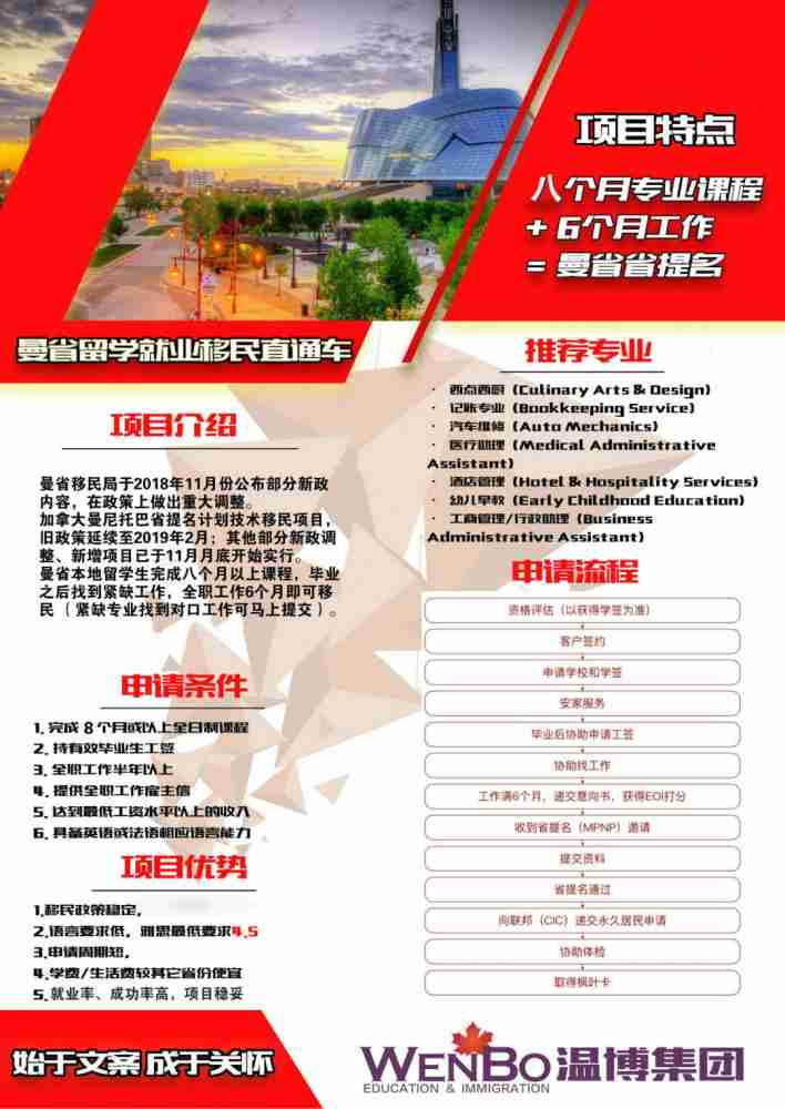 曼省新政出台也不怕! 【温博集团】——加拿大ICCRC持牌顾问团队,拥有多家院校授权 ,快速申请、全程专业指导。 为您精选八个月以上全日制课程, 提供完备就业培训和背景提升, 高质量文案辅助您 学 ...