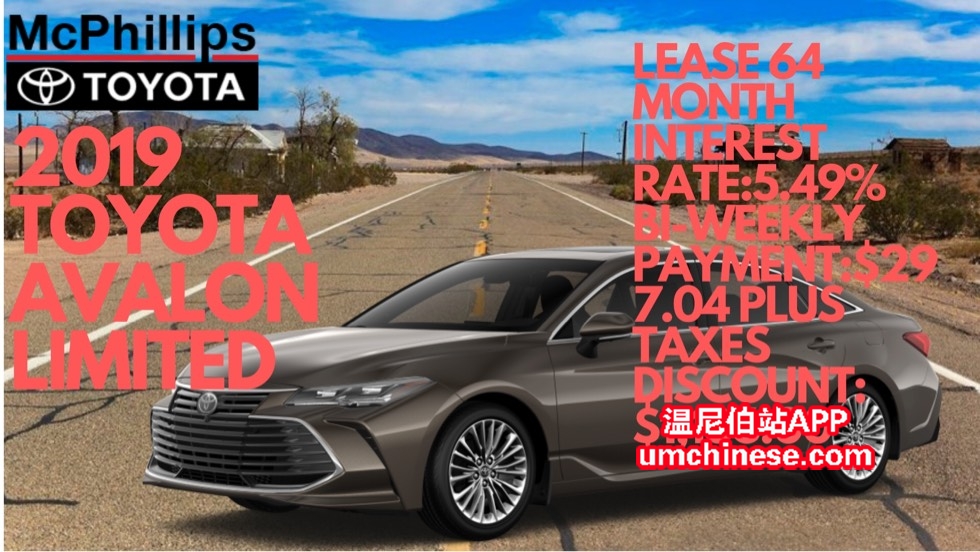 LEASE 新车今日特惠! (**2019丰田亚洲龙顶配**) (**U001441**) 这台车今日只要 (**$297.04每两周 **利息5.49%**64个月Lease**) O.A.C. 加税. 现金(**$48,697.70**)加税. 直减:$1,186 欢迎今天给我打电话:2 04 ...