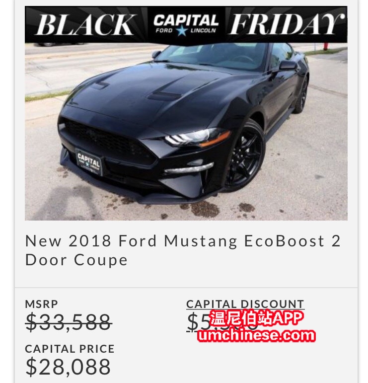 黑五大清仓 野马也特价 起价两万八 劲减7千8 电话 204-898-7766 微信 JackZhangCanada 地址 555 Empress street