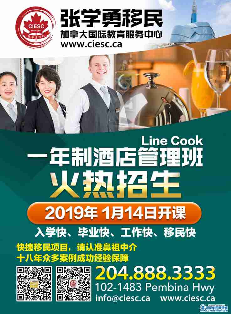 【张学勇移民】2019年快捷移民课程火热招生啦!烘焙/物流管理/酒店管理/药剂师助理/按摩理疗/金融财会/薪酬管理/幼儿早教!1年专业2年工签,2年专业3年工签,稳妥移民!顶级金牌文案私家定制大龄客户旅转学! 曼省 ...