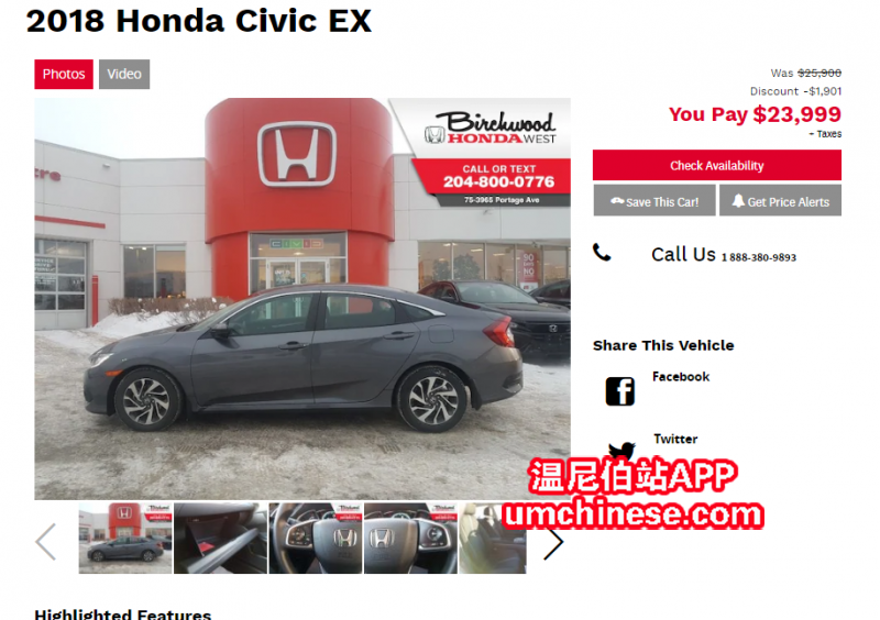 本地车 , 车主换车回给我们车行, 只有7293公里 思域是全北美销量连续 配有2.0 4缸发动机, 倒车影像,蓝牙, 加热布座椅,16寸铝合金轮毂,car-play 等。 买车送3年道路救援,轮胎轮毂保修 - 这台车通过 ...