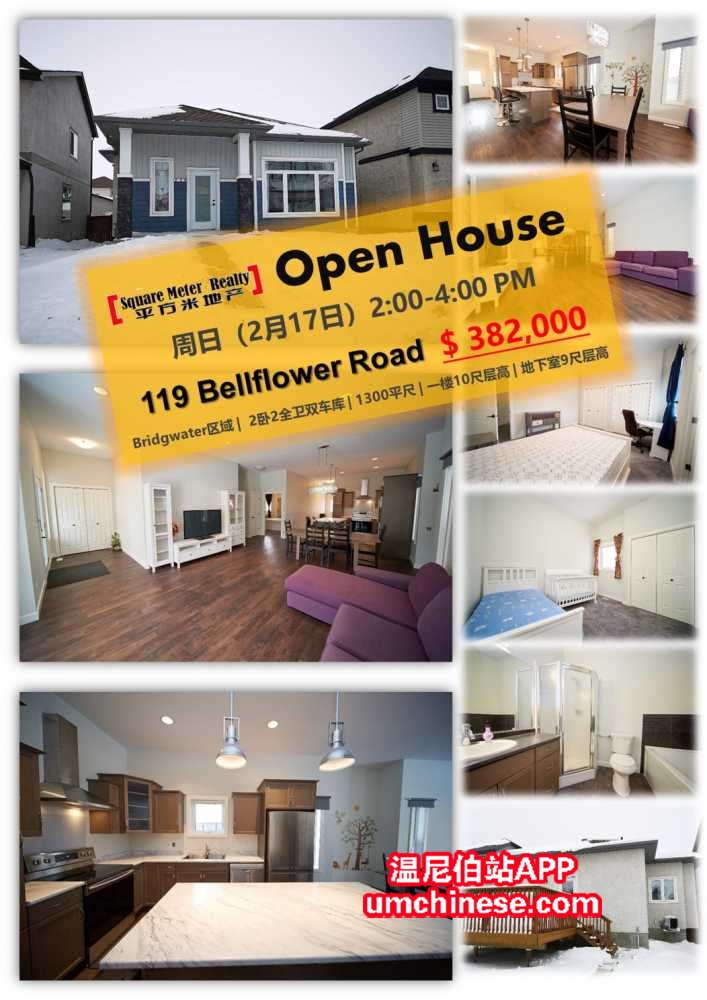 周六(2月17日)下午 2 - 4 时 119 Bellflower Rd 欢迎您 ! 平方米地产刘聃 204-228-4950