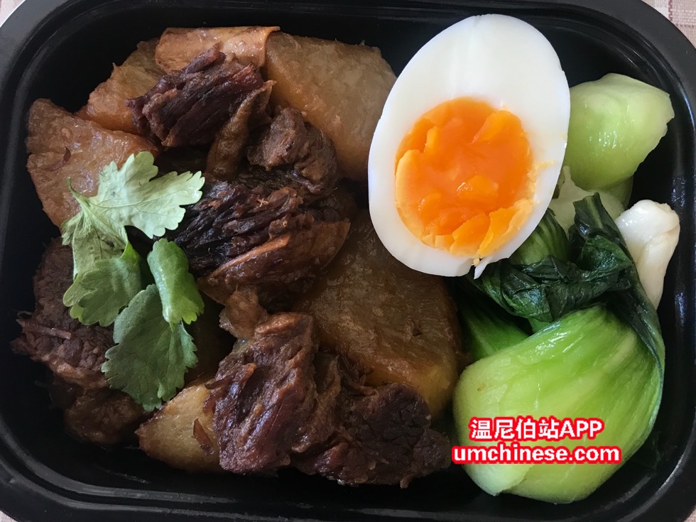 粤式柱侯萝卜牛腩便当!量多料足!值得你一试! 现在可以开始接受预定哦! 每份13刀,外送费2刀起,南区满20免外送费哦! 还有粤式糖水,每天不重样哦 有兴趣的请加微信