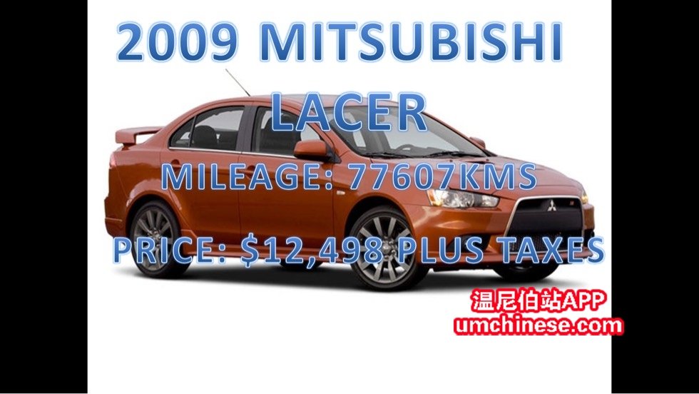 2009 三菱 LANCER今日特惠! (**2009 MITSUBISHI LANCER**) 这台车今日只要 $12,498加税. 这台车只有 77,607KMS 欢迎今天给我打电话:204-720-5711加我的微信:Easing001 **额外需求** 如果你今天来店里, 我们的 ...