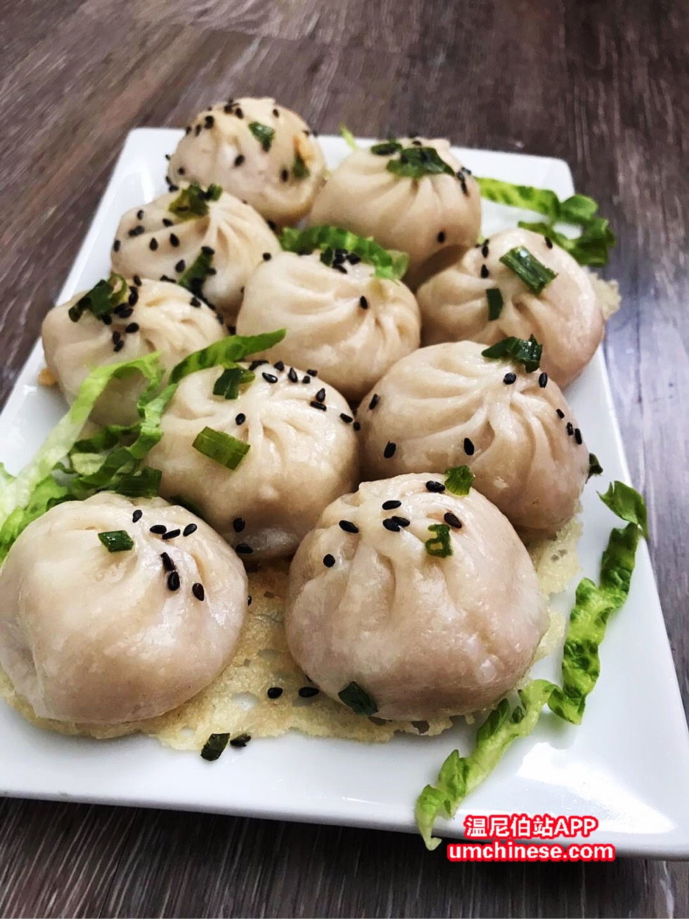 一米kitchen新品:正宗上海生煎包(纯肉馅,满满的爱) 白乎乎的身子,胀鼓鼓的脑袋,底脆、肉鲜、汤多~ 咬一口还会汁液迸溅,咀嚼时还有芝麻和葱香味[色]