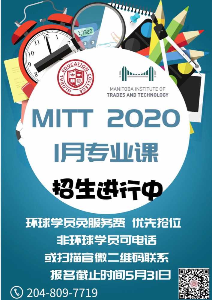 MITT 2020年1月份专业课即将开启报名,环球教育全程助攻,为您争抢专业课位置! 环球学员免服务费且优先报名,请尽快联系环球教务人员或客服代表,新朋友报名可扫官微二维码或电话联系204-809-7719. 报名截止时间5月 ...